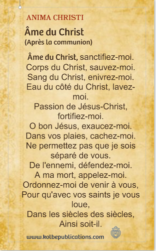 Prayer Card Anima Christi Ame Du Christ French Kolbepublications